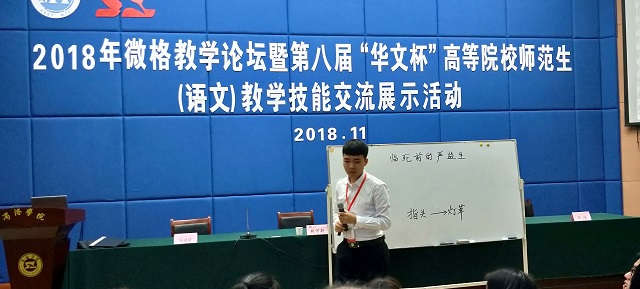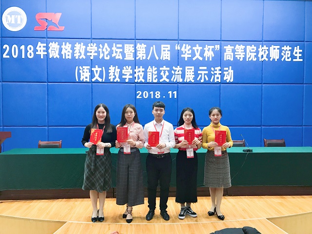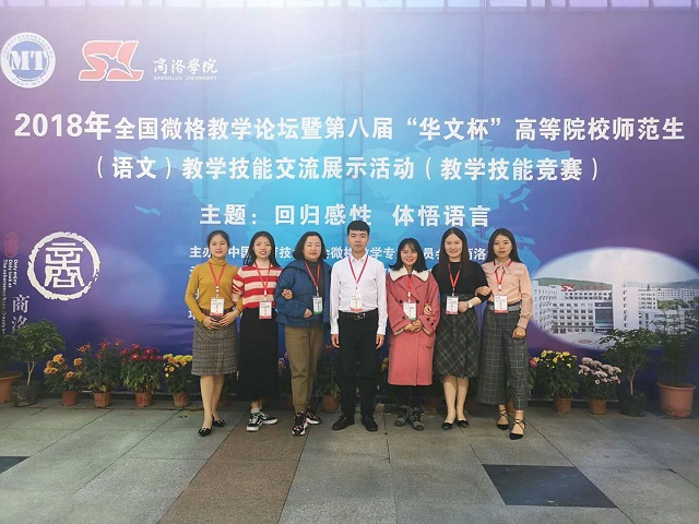 本网讯(文/幸永慧 图/教科学院)11月10日—12日,2018年全国微格教学论坛暨第八届“华文杯”高等院校师范生(语文)教学技能交流展示活动(教学技能竞赛)在陕西省商洛学院举行。本次大赛有全国25个省市,70余所高校,近400余名师生参与。比赛包括教学设计、说课、模拟上课、现场答辩四个环节,设立教学技能奖和教学设计奖两类奖项。