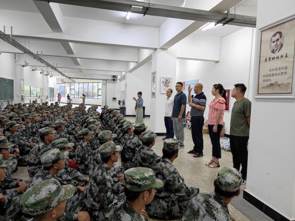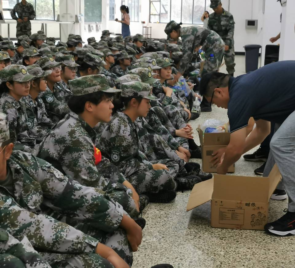 领导老师和学生干部们为21级军训学员发放慰问品,高年级的学长们和大一新生还带来了精彩的表演,缓解了同学们连日来的疲惫。