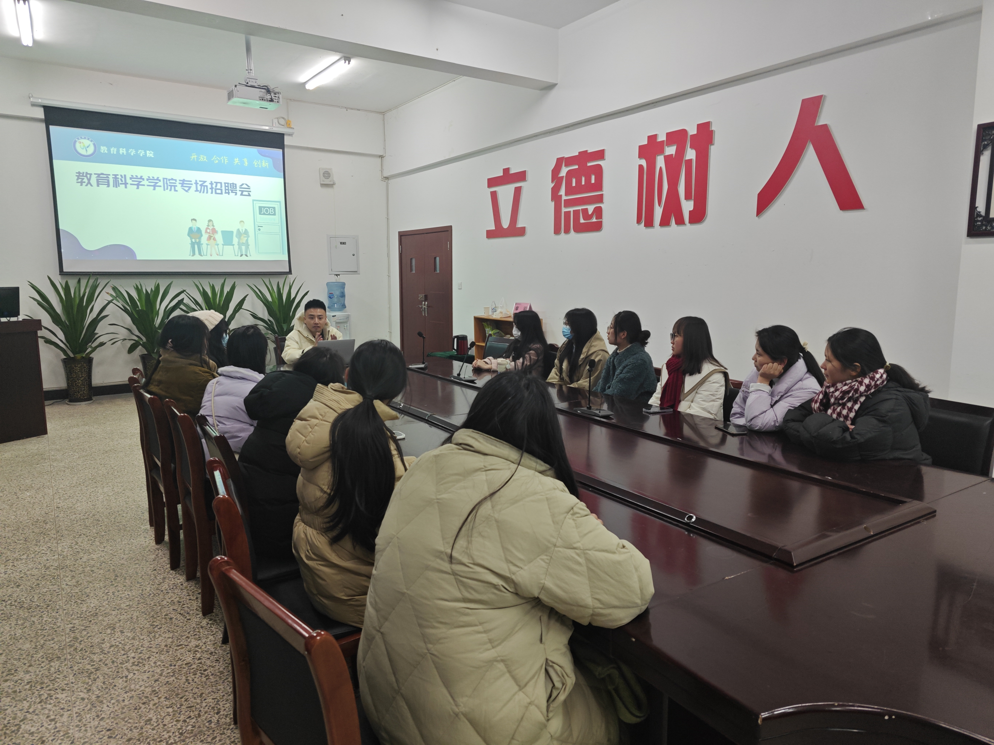 本网讯(文、图/邓萱)12月20日,betway西汉姆在学院会议室举行了专场招聘会,本次招聘会邀请到天使鲸选公司、峨眉山市明谦幼儿园、峨眉山博睿特幼儿园有限责任公司的招聘人员到院宣讲,学院小学教育、学前教育、心理学专业的学生参加。