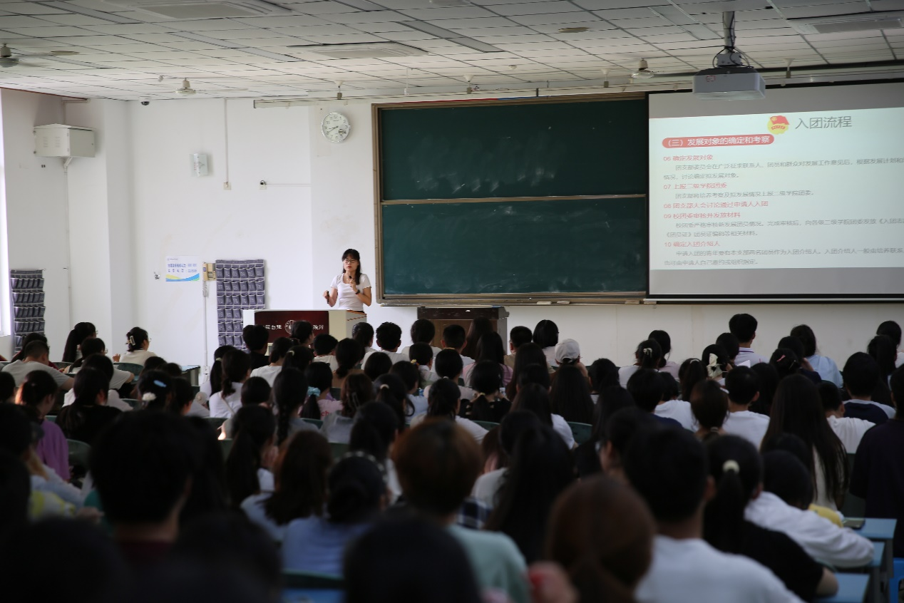 杨蕾为新生们详细介绍了大学入团的流程以及团员入党的步骤,围绕入党动机、入党要求、考察过程以及党员的权利与义务等方面进行了全面讲解,让新生们对入团入党有了更清晰的认识。接着,帅希权对学校的学籍管理规定以及学生手册的部分内容进行了深入介绍。从学分修读的要求,到各项考试规定,帅希权的讲解为新生们了解专业学分提供了重要指导。随后,童瑶给同学们介绍了学院的团学机构,鼓励新生们根据自己的兴趣爱好和特长,积极加入学院的各类机构部门,为自己的大学生活增添色彩。