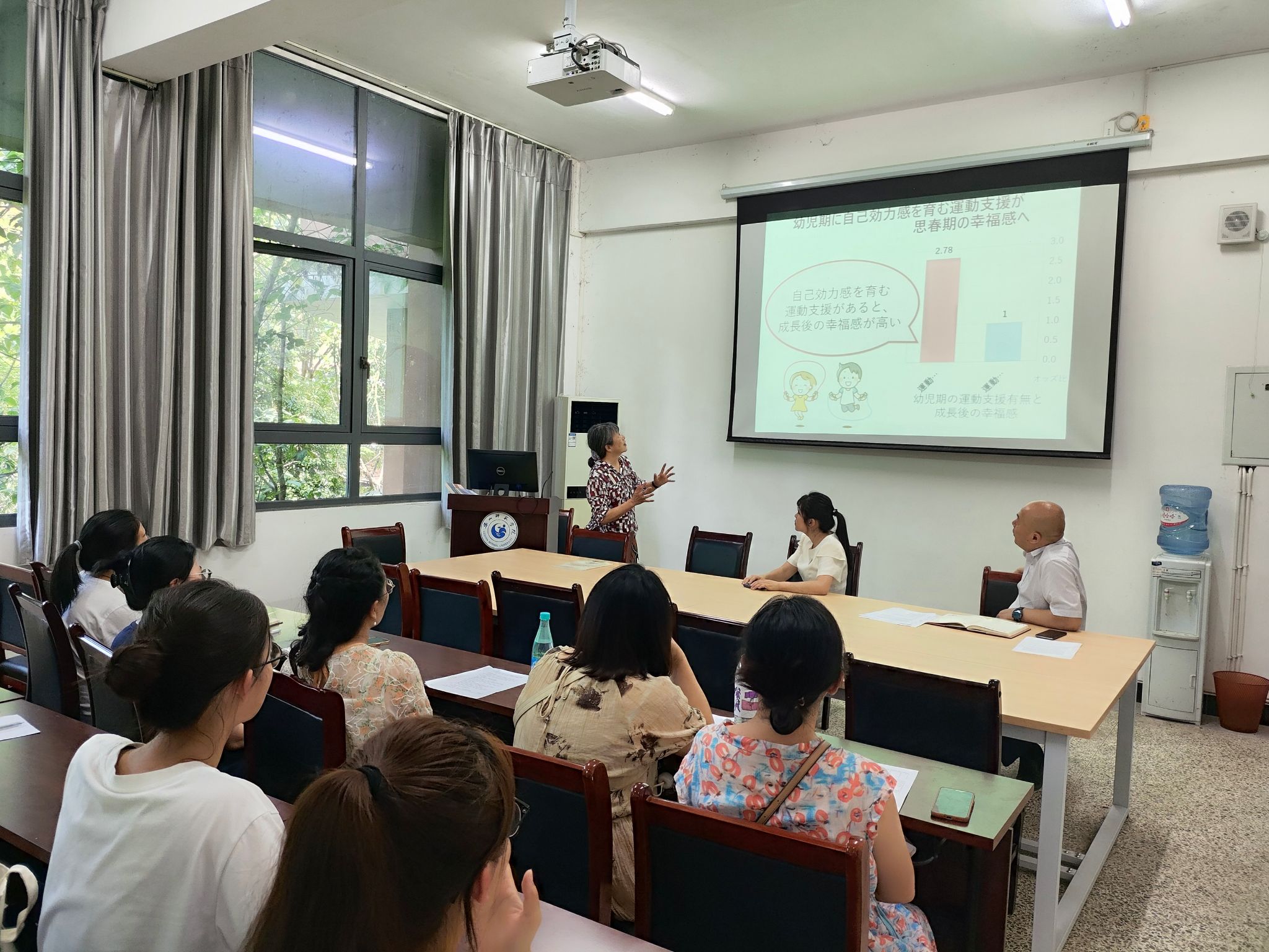 会议开始,安梅教授以其丰富的理论知识与实践经验为基石,通过详实的案例、生动的讲述,分享了日本学前教育在课程设计、幼儿行为引导、家园共育等方面的先进理念与成熟做法。她指出,学前教育应注重幼儿个体差异,教师是幼儿的支持者而非指导者,幼儿教师应充分尊重幼儿自主性,为婴幼儿赋能,最终让幼儿实现自己的梦想。