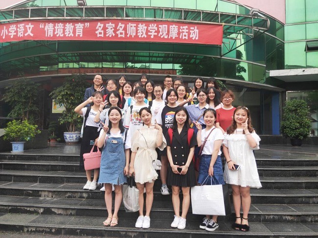 本网讯(文、图/袁密)2019年5月23至26日,教科学院吴永胜和姜立刚两位老师率领卓越小学教师培养工作坊26名同学赴成都参加专业研习活动。吴永胜老师带领大家赴四川师范大学实验外国语学校参加了小学语文“情境教育”教学观摩活动,同学们既目睹了省内外名师执教之风采,也感悟到“情境教育”在语文教学活动中的渗透。其中一部分同学在参加完语文观摩后,又在姜立刚老师的带领下赴成都龙泉七中参加了小学数学“空间观念”教学专题研习活动,同学们初步感知了“空间观念”在数学教学活动中的运用,深刻领悟到学科理论知识的重要性。