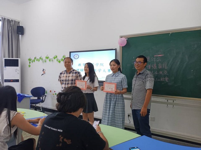 最后,主持人宣布大赛最终成绩,评委老师依次为获奖选手颁奖,并合影留念。2017心理学专业曹小丹同学获得第一名,并将代表学校参加全国首届大学生心理辅导课大赛。