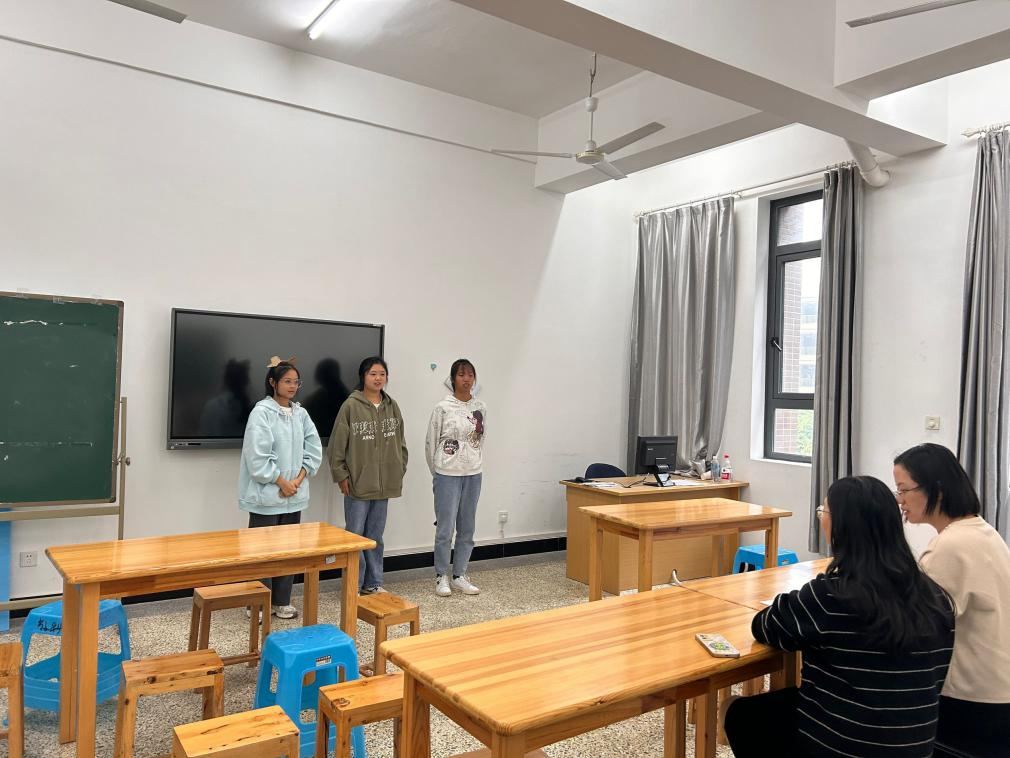 在实践周考核环节中,两个班的学生共分为四组,各组两名专业教师进行考核。组内学生自行分组,自选故事,用富有感染力的语言,讲出了一个个生动形象有趣动听的儿童故事,用表演的形式让传统的儿童故事变得更具观赏性和趣味性,同时也展现了自身扎实的专业技巧。