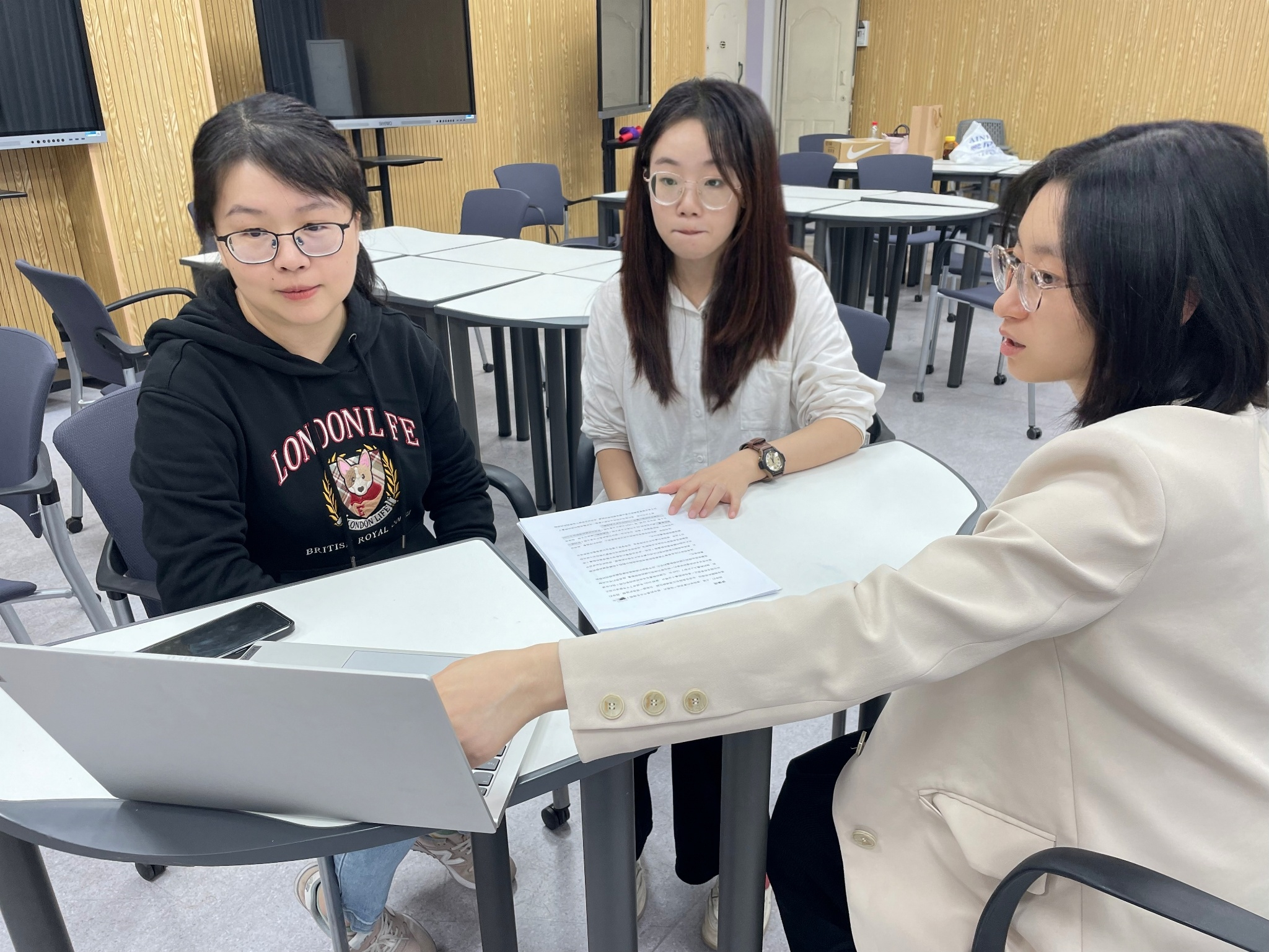 本网讯(文、图/陈芊)11月5-4日,王朝君、张旭梅、叶超三位老师于行知楼511教室,邀请了一线工作的科学老师——乐师附小的刘祺祺老师,共同对“川渝第二届师范生教学能力大赛”的参赛选手陈芊进行了指导。