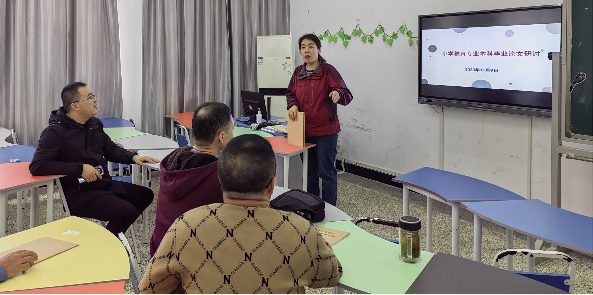 本网讯(文/图、刘佳龙)11月9日下午,教育学系全体教师在特教大楼B栋305教室组织召开教研室主题工作研讨会议。小学教育专业教师集体参会,会议由小学教育专业系主任姜立刚主持。本次会议主要就小学教育专业“毕业论文(设计)指导工作”展开了专题研讨。本学期小学教育专业毕业论文(设计)指导工作已经拉开序幕,按照学校和学院毕业论文指导工作方案计划,要求各位指导教师要加强与学生的沟通,强化过程指导,积极完成毕业论文系统各环节材料的上传与审批,督促学生认真收集论文撰写过程中所需要的素材和资料,积极着手撰写毕业论文初稿。