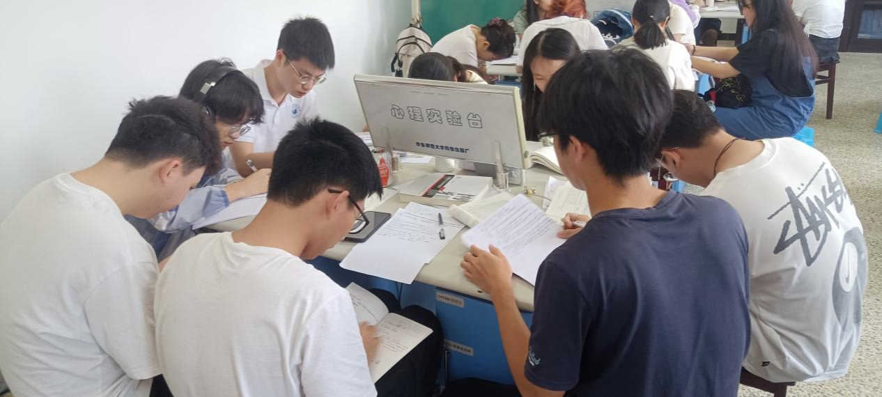 活动主要分为四个部分,即拟定测评工具,施测过程,测量结果评估和撰写并提交总结。63名心理学专业学生根据班级分组,按照时间轮流在特教B402进行任务活动。这次活动不仅让大家明白测量工具如何进行使用和施测,还要求能对其熟练掌握。这样的方式不仅有助于学生专业能力的提升,还对以后从事测评方面工作有一定的帮助。