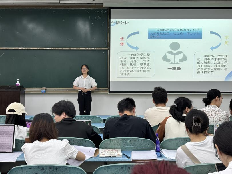 本网讯(文图/杨鑫)为betway西汉姆于5月31日在行知楼举办科学教育专业师范生教学技能大赛。来自2022级、2021级科学教育专业27名同学参加此次比赛,每人有8-15分钟的片段教学时间,各参赛人员灵活运用教学方法和手段,在规定时间内去展示片段教学,确保每位学生都能够积极参与到课堂中。