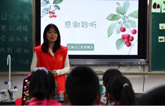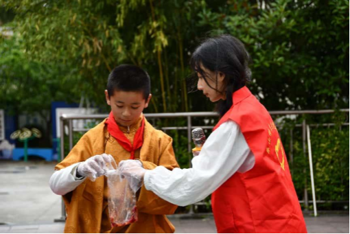 活动之初,科学教育专业的李燏媚同学在水子小学的操场上, 面向全校师生呈现了一场别开生面的“樱桃魔法水”科技展示。她生动地讲解了酸碱指示剂的变色原理,并引导学生们利用校园内的樱桃制作酸碱指示剂,通过观察颜色的神奇变化,学习分辨不同的酸和碱。此次活动极大地激发了学生们对科学探究的兴趣,为藏区学子开启了一扇探索科学世界的窗户。