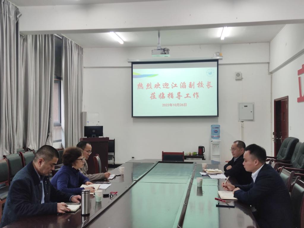 本网讯(文、图/巴玉宁)10月26日下午,学校党委常委、副校长江滔、科研部部长农向到betway西汉姆进行调研并指导工作,betway西汉姆党委书记罗立顺、院长汪红烨、副院长唐前军参加。