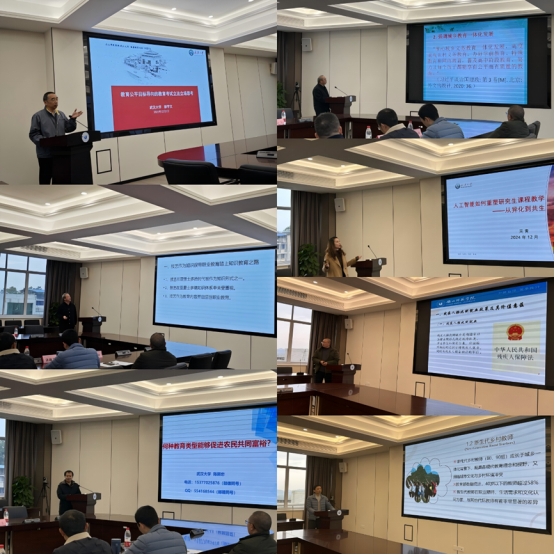 论坛第一阶段,彭宇文以《教育公平目标导向的教育考试立法立场思考》为题,提出要坚守教育考试立法的教育立场和务实立场;汤敏骞以《职业教育本原转向:从技艺到行动》为题,探讨了技艺本原论的缘起和滥觞,建构出职业本原的转向需求;陈新忠以《何种教育类型能够促进农民共同富裕?》为题,提出我国应在现有教育基础之上去类型、去标签、综合性、特色化地发展中等和高等教育,从而促进农民共同富裕;杜学元以《新时代农村教育公平的忧思》为题,阐述了对农村教育现代化建设的思考;吴青以《人工智能如何重塑研究生课程教学——从异化到共生》为题,提出了当前人机共生的研究生课程教学新模式;梁剑以《保障公平抑或限制权利?——按比例就业政策与残疾人就业困境》为题,从改善残疾人就业政策出发,探讨了社会大环境下残疾人的就业问题;陈谢平则向大家介绍了新生代乡村教师乡土情怀的研究进展。第一阶段报告结束后,陈新忠进行了点评与总结。论坛第二阶段由武汉大学政治与公共管理学院的博士生围绕“新时代教育公平与公共治理创新”这一主题进行了研究分享。杜学元对第二阶段的报告进行了点评与总结。