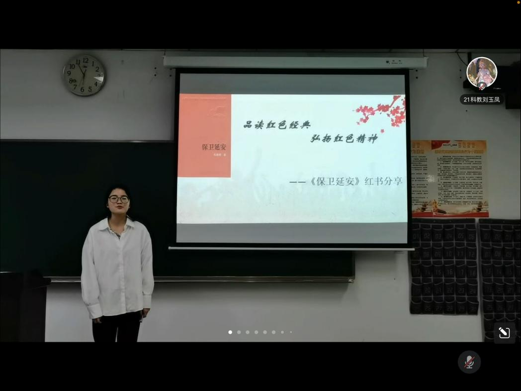 活动伊始,各组按照抽签顺序分享红色书籍,共同围绕写作背景、内容简介、人物特点、书籍点评等方面对红色经典书籍进行讨论,分享小组内的理解和感悟。其中第一组对《红岩》进行分享,让同学们更加了解战争和革命,更明白黑暗需要人们用光明,用信仰去驱散;第三组通过对《保卫延安》的分享,提出要珍惜来之不易的和平生活,要在党的领导下为建设更加美好的祖国而自强不息;第五组分享的《青春之歌》告诉同学们要积极奋斗,莫负青春。