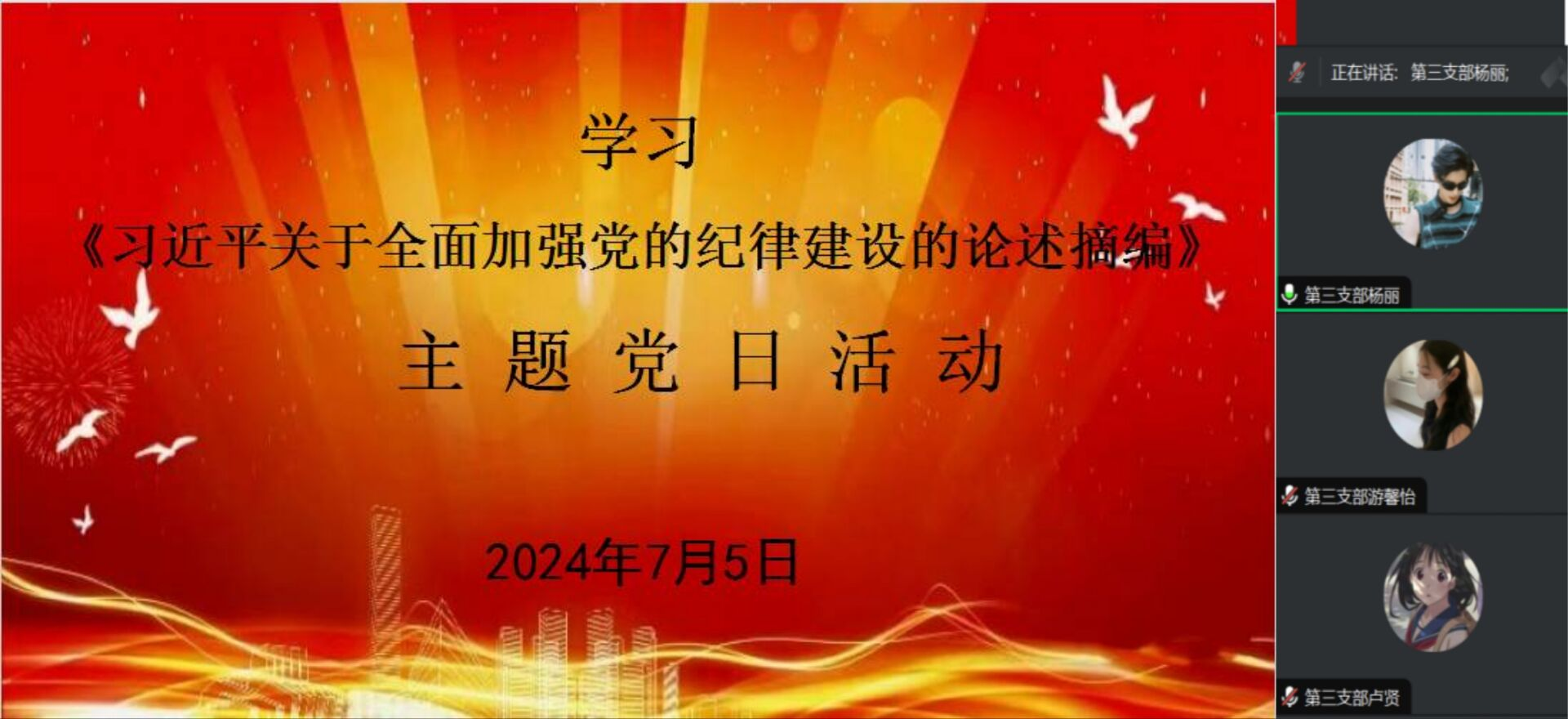 本网讯(文、图/林小雨)7月5日下午,betway西汉姆组织全体学生党员开展线上学习《习近平关于全面加强党的纪律建设的论述摘编》主题党日活动,此次活动由郭纤纤主持。