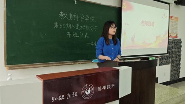 仪式在庄严的国歌声中拉开帷幕。首先,杨蕾对新一期入党积极分子表示祝贺并对他们提出了要求,希望全体学员珍惜这次难得的学习机会,端正态度,提高政治素养和思想觉悟,深刻领会党的性质、宗旨和纲领,以党员的标准严格要求自己,为他人树立良好榜样。