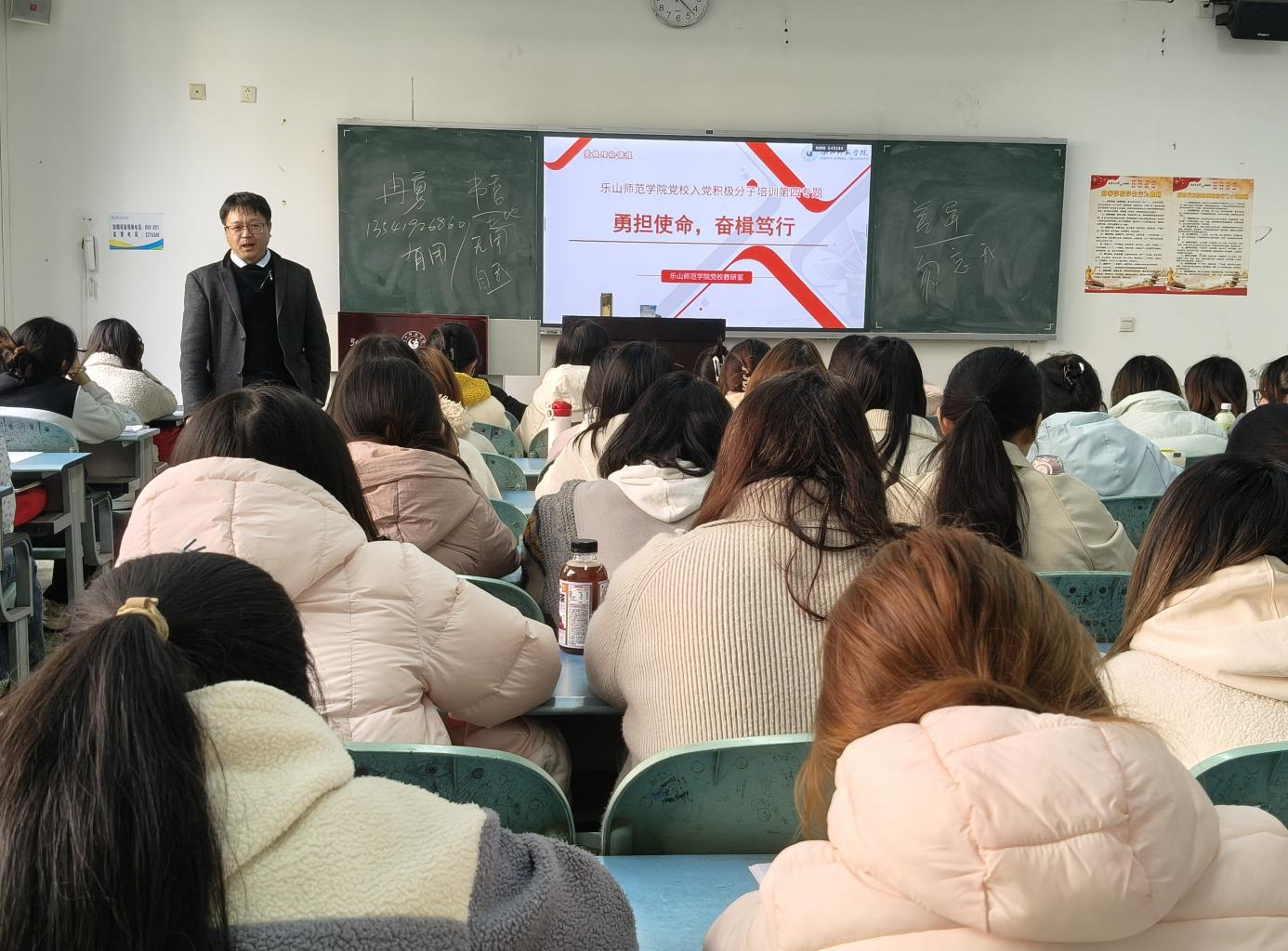 本次党课由旅游与地理科学学院党委副书记、纪委书记冉勇主讲,以“勇担使命,奋楫笃行”为核心,围绕党员发展流程、党员义务与权利两大板块展开。冉勇系统解读党章相关规定,梳理入党全流程关键节点,阐明党员义务与权利的辩证关系,为学员们夯实入党理论基础、明确实践方向提供有力指导。