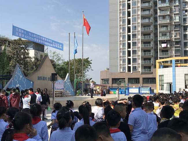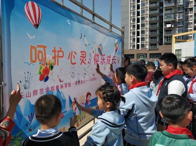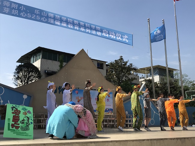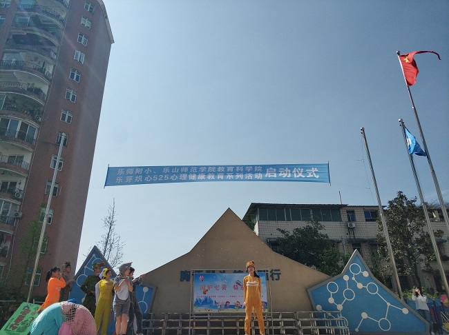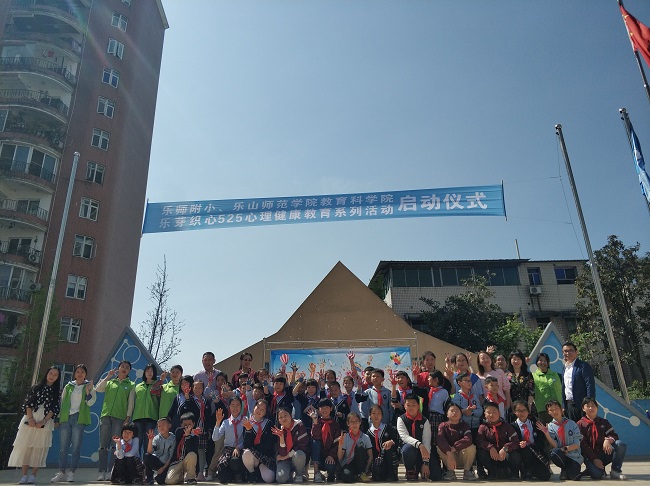 为深入推进服务型党组织建设,提升心理学专业学生的综合素养,本学期心理学专业实践教学周活动以“乐芽织心”心理服务志愿者团队为载体开展了一系列学校心理健康教育服务活动。4月9日上午10:30,教科学院党总支书记杨霞、副院长王立新带领乐芽志愿者,在乐师附小的操场举办了“乐芽织心5•25心理健康教育系列活动”启动仪式。