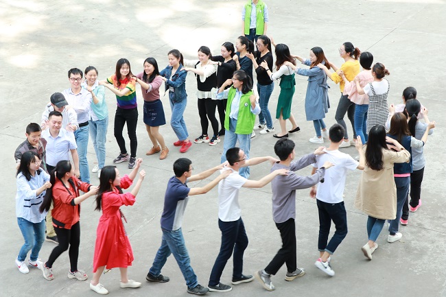邓雪薇老师和刘采梦老师为马边中学生青年教师开展了“快乐工作,从沟通合作开始”主题的团体凝聚力培训。