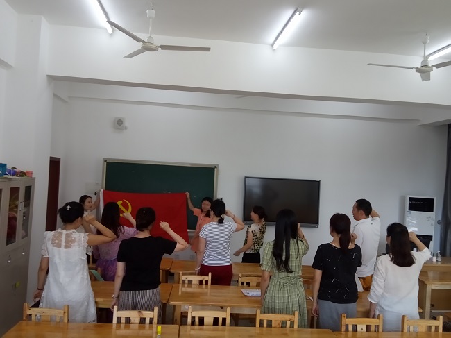 活动中,党旗鲜艳夺目,气氛庄重肃穆。在各支部书记的主持下,全体党员举行了重温入党誓词的宣誓仪式。仪式中,心理学系党支部老党员徐建奇率先领誓,学前教育系支部书记张涛、小教系支部书记张广云随后带领全体党员同志面对党旗站立,高举右手,庄严宣誓“我志愿加入中国共产党,拥护党的纲领……”。宣誓完毕后,学前教育党支部党员余祥说:“重温入党誓词是一次精神洗礼,我们要继续坚定理想信念,牢记全心全意为人民服务的宗旨,扎实做好教工本职工作,争先创优,为教科学院的发展积极贡献自己的一份力量。”