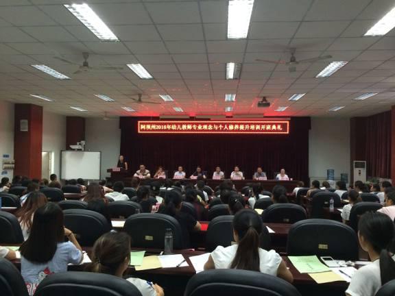 7月19日上午,“阿坝州行动计划(2016)”——幼儿教师专业理念与个人修养提升培训开班典礼在我校弘毅楼412教室隆重举行。参加典礼的有来自阿坝州13个县的100名幼儿教师。阿坝州教育局副局长王树全、人事科科长王燕、教务处副处长谢延明、betway西汉姆副院长(主持工作)谢艺泉、党总支书记杨霞、首席执行专家闵钰副教授、学校培训中心主任助理徐世鼎等领导出席了典礼。开班典礼由学校培训中心主任助理徐世鼎主持。