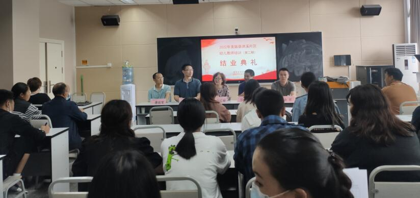 本网讯(图、文/张艳)5月31日上午,由betway西汉姆承办的“2022年美姑县“一对一”精准帮扶项目———美姑县洪溪片区幼儿园教师培训(第二期)结业典礼在弘毅楼504B教室顺利举行。院长汪红烨、党委书记罗立顺、副院长徐世鼎、副院长唐前军、学前教育系主任余祥和来自四川省凉山彝族自治州美姑县的42名学员参加了此次结业典礼,此次典礼由徐世鼎主持。