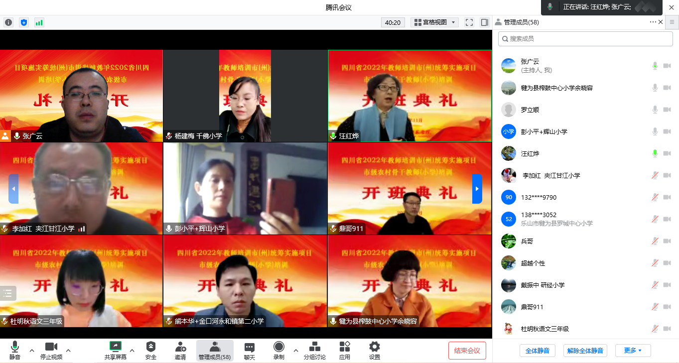 本网讯(文图/李巧玥)14日上午,由betway西汉姆承办的四川省2022年教师培训市(州)统筹实施项目市级农村骨干小学教师培训开班典礼顺利开展。betway西汉姆党委书记罗立顺、院长汪红烨、党委副书记兼纪委书记何晓军、副院长徐世鼎、唐前军,项目首席执行专家、教师教育公共课教研室主任张广云,班主任杨林、孙来成及乐山市各区、市(县)50名市级骨干班主任及骨干学科教师参加了此次典礼,开班仪式由徐世鼎主持。