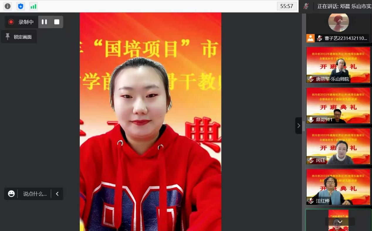 乐山市实验幼儿园高新分园的邓晨老师作为学员代表进行了发言,她表达了对此次培训的期望,并代表全体学员承诺要认真交流学习,努力提升自身专业素养。最后她表示感谢承办方教科学院为此次培训做出的精心准备。