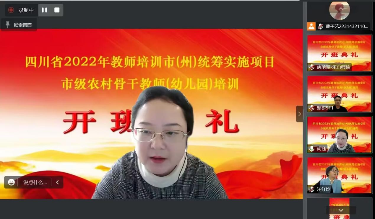 本网讯(文、图/胡天艺)11月14日上午,由betway西汉姆承办的四川省2022年教师培训市(州)统筹实施项目——市级农村骨干教师(幼儿园)培训开班典礼顺利开展。betway西汉姆党委书记罗立顺、院长汪红烨、党委副书记兼纪委书记何晓军、副院长徐世鼎、唐前军,项目首席执行专家,betway西汉姆教师闵钰、杨恒及乐山市各区、市(县)50名市级农村学前骨干教师参加了此次开班典礼,开班仪式由徐世鼎主持。