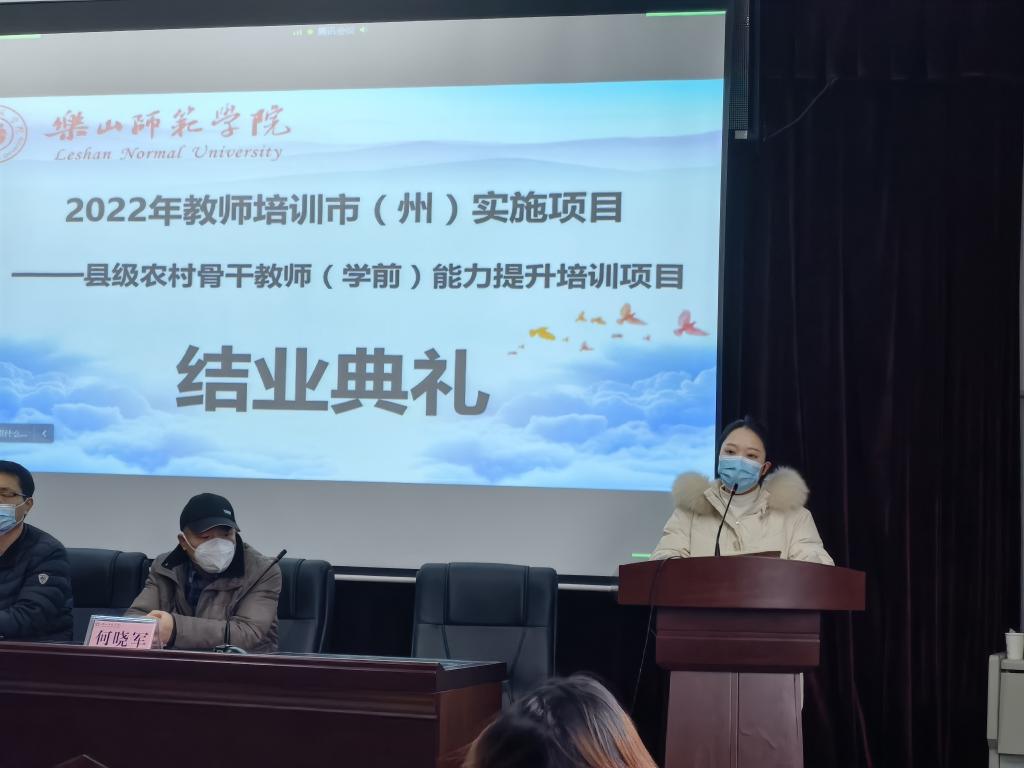 本网讯(文、图/苗芳芳)12月13日上午,2022年“国培计划”——县级农村骨干教师(学前)能力提升培训结业典礼在pbw必威西汉姆联弘毅楼412举行。出席开班典礼的有betway西汉姆院长、国培首席专家汪红烨、党委书记罗立顺、党委副书记兼纪委书记何晓军、副院长徐世鼎、唐前军以及来自四川乡镇公办幼儿园的49名培训老师,由徐世鼎主持结业典礼。