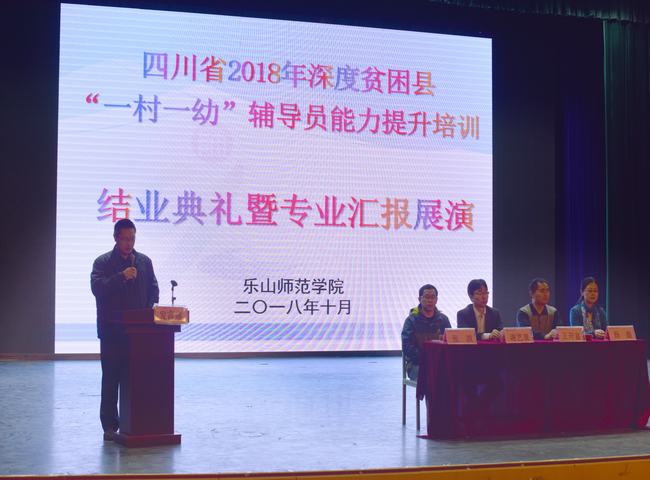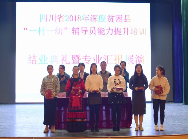 10月30日,由betway西汉姆承办的四川省2018年度深度贫困县“一村一幼”辅导员能力提升培训结业典礼暨专业汇报表演在实训楼多功能厅举行。教科学院副院长(主持行政工作)谢艺泉、党总支书记杨霞、副院长徐世鼎、党总支副书记张波和马边教师进修学校校长王开富等出席此次会议,会议由徐世鼎主持。