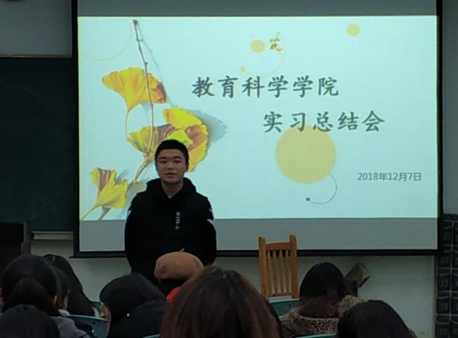 刘涛老师首先介绍了此次学前教育专业实习的基本情况,并对此次总结的意义和要求作了介绍。随后,各实习单位小组长代表各实习小组对实习期间的基本情况、收获与感想做了详细的汇报,并对实习工作提出了意见和建议。