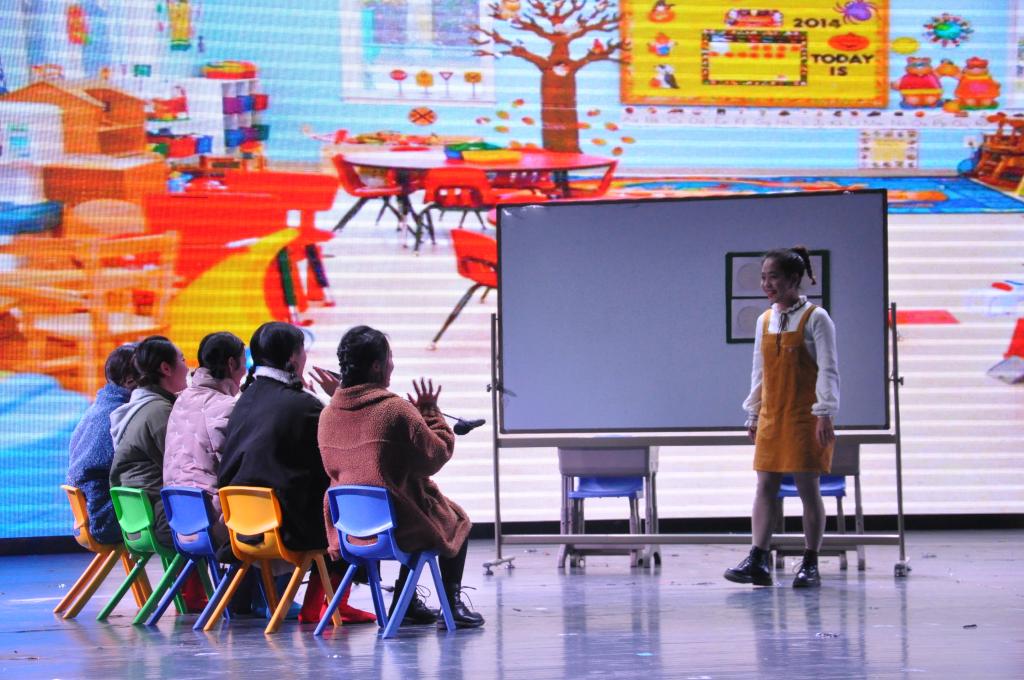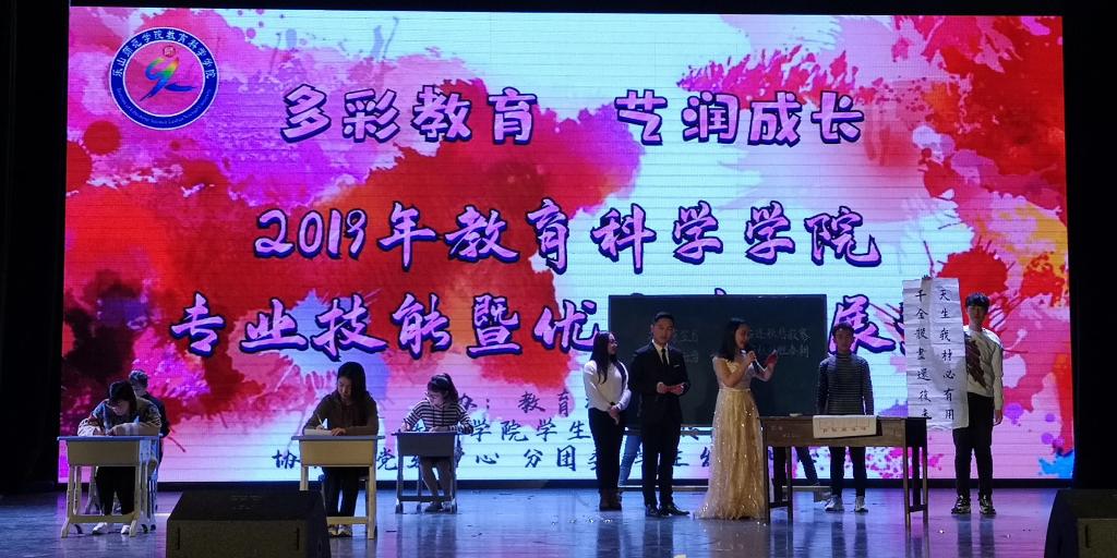 讲课也是师范生必不可少的专业技能,在学科竞赛中获得优异成绩的尹慧娇、傅玉婷、曹小丹三位同学超越时空的课堂,把幼儿园、小学、高中巧妙地结合在一起,充分展现了教科学子优秀的专业素养。“同窗情谊在人的一生中尤其纯真宝贵”,18小教本3班同学带来的心理情景剧《蜕变》触动了在场的每一位观众。儿童舞蹈展示《小雏新生》、《蜗牛的梦想》更是把技能展示推向了高潮。在演出接近尾声时,19学专1班同学带来了舞蹈《鼠你快乐》,他们怀着新春将至的祝福,迎接鼠年的到来。