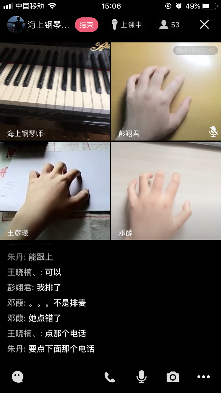针对19级学前教育专业和18级小学教育专业的《键盘基础》课程,以讲授和示范为主,田老师在群课堂里一遍遍地示范弹奏,学生们同时进行手指的模仿性练习,并且不时点名连麦,抽查弹奏情况、监测教学质量、跟进学生在屏幕后的学习状态。同学们纷纷表示这样的教学方式很直观,能够清楚地看到老师的示范,对理解弹奏要点有很大帮助。由于大多数同学只能在家里的书桌上、茶几前进行手指练习,较为抽象,钢琴演奏专业出身的田苗老师还在课堂结束前同学们献上一首首钢琴曲,调节学生的学习情绪。