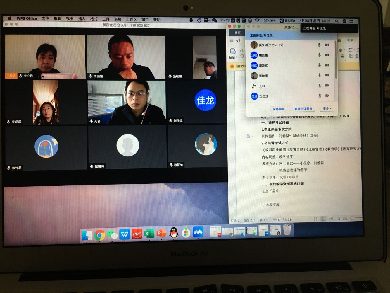 本网讯(文、图/廖华平)为了进一步推进在线教学工作,提高教学质量,4月24日下午2:30,betway西汉姆组织教育学系、学前教育系、心理学系分别借助“腾讯会议”或QQ平台开展了教学研讨活动。此次教学研讨会主要围绕着疫情防控特殊时期网络在线教学中的课程考核方式、在线教学资源需求以及线上教学经验反思三大主题展开了讨论。