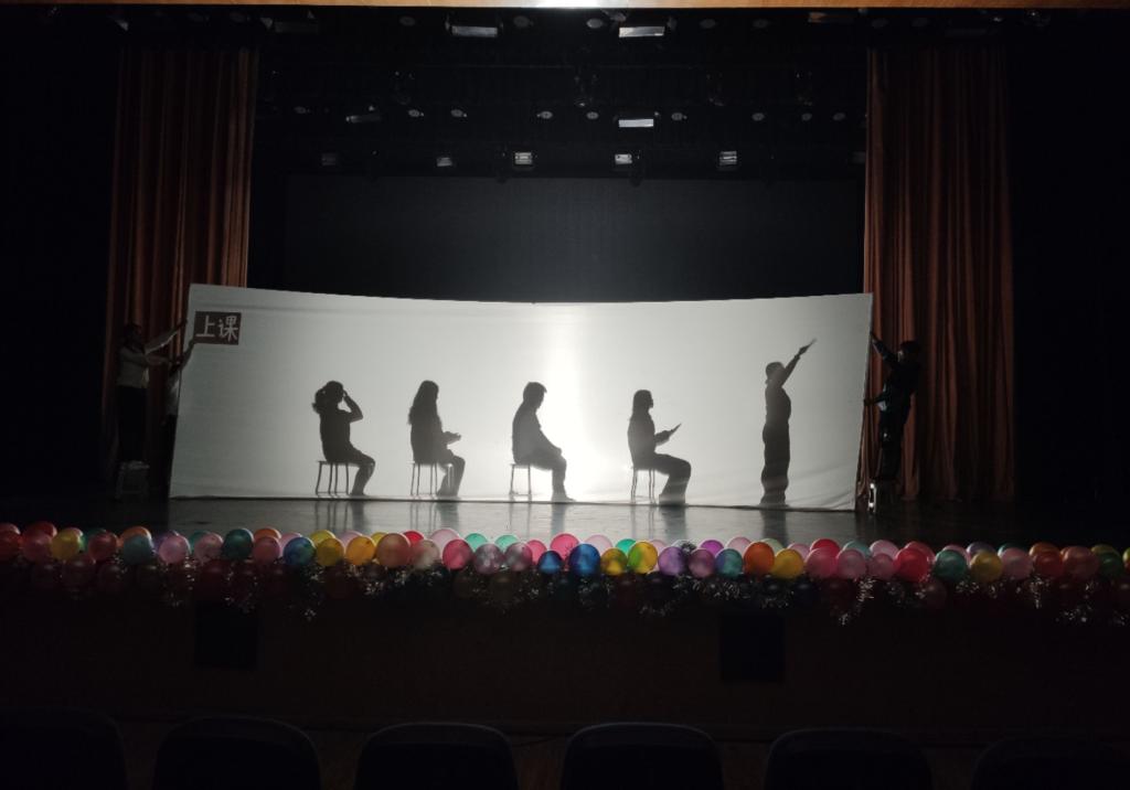 此次晚会我院首次将影子戏搬上舞台,生动演绎了《我们的大学》。白色的幕布,黑色的人影,简单的黑白对比却带来强烈的视觉冲突效果。20小教1班的同学以极其新颖生动的方式为观众展现了大学四年生活的片段,在细节中流露温情,于幽默中饱含感动,独特的表演形式让观者耳目一新。