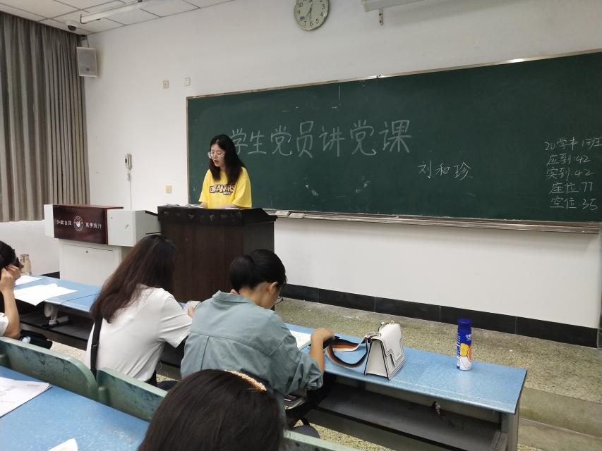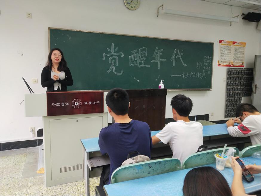 此次活动中,八名学生党员走进大一课堂,为大一学生深入讲解了党的发展历程,包括:五四薪火的燃起,觉醒年代的辉煌,刘和珍的英勇就义,以及时代楷模彭士禄等英雄人物事迹。学生党员们用生动的语言讲述共产党矢志不移、永不言败、锲而不舍的崇高精神。