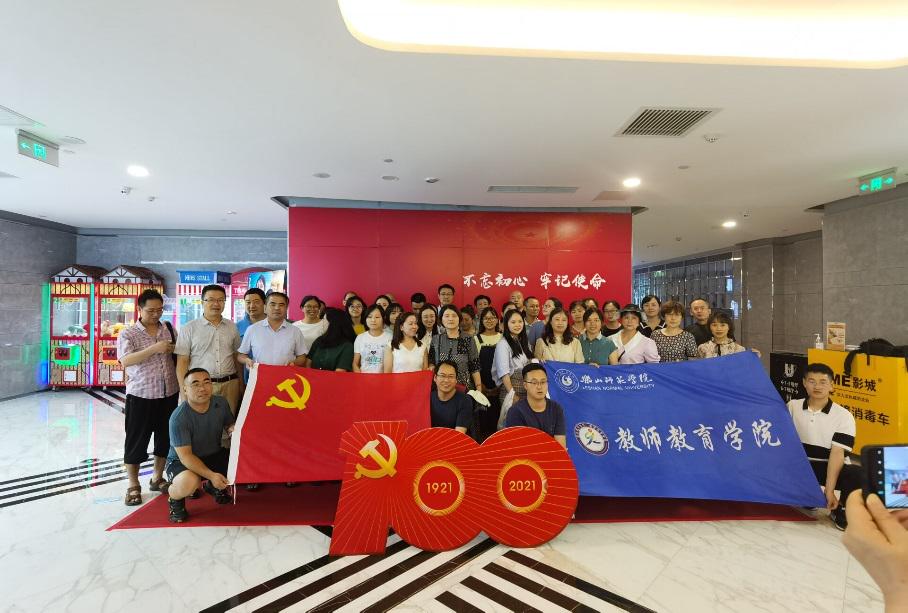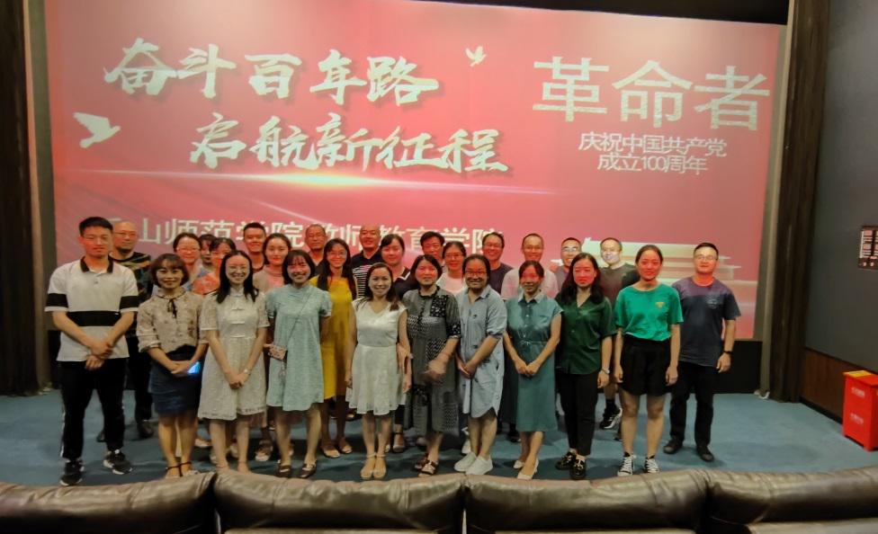 本网讯(文、图/叶锐)为庆祝中国共产党成立100周年,认真学习贯彻习近平总书记在庆祝中国共产党成立100周年大会上的重要讲话精神,教师教育学院党总支和分工会于7月8日下午组织全体老师在UME影城共同观看电影《1921》和《革命者》。