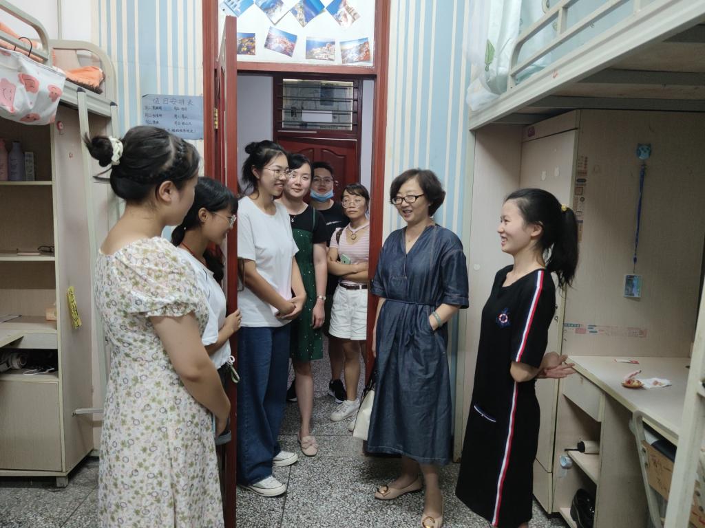 “你们来自哪儿?”“这里天气还适应吗?”……走进学生寝室,学院领导和老师们向新同学们亲切问好,关心学生对校园环境的适应情况,关心他们的饮食住宿、关心他们的生活,提醒新同学们要做好疫情防护,预防推销和网络诈骗,不断强化安全意识。鼓励同学们建立和谐友好的人际关系,以积极良好的心态适应大学校园新生活,尽快明确自己的目标,快乐学习,健康成长。