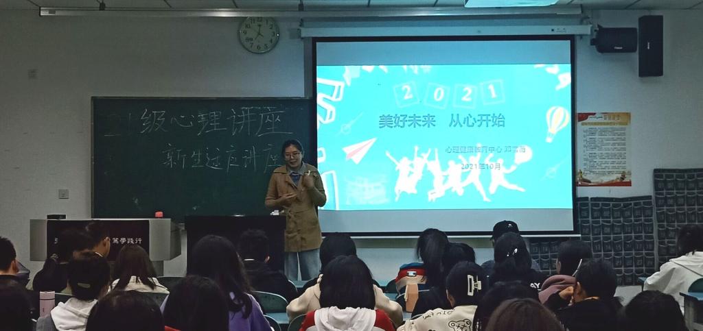 本网讯(文、图/蒋晓)为帮助21级新生提升心理素质,尽快适应大学生活,11月4日晚7:00,教师教育学院于行知楼415教室举办了21级心理健康暨新生适应性讲座。本次讲座由心理健康教育中心的邓雪薇老师主讲,21级小学教育专业和心理学专业同学聆听了本次讲座。