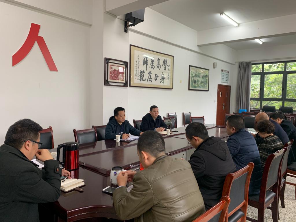 本网讯(文、图/胡天慧) 11月16日下午,省纪委监委驻学校纪检监察组组长、学校党委副书记、纪委书记彭尚源,省纪委监委驻学校纪检监察组副组长兼办公室主任、学校纪委副书记兼办公室主任邹大勇到教师教育学院进行调研,调研会在教师教育学院会议室举行,教师教育学院全体领导班子和科级干部参会。
