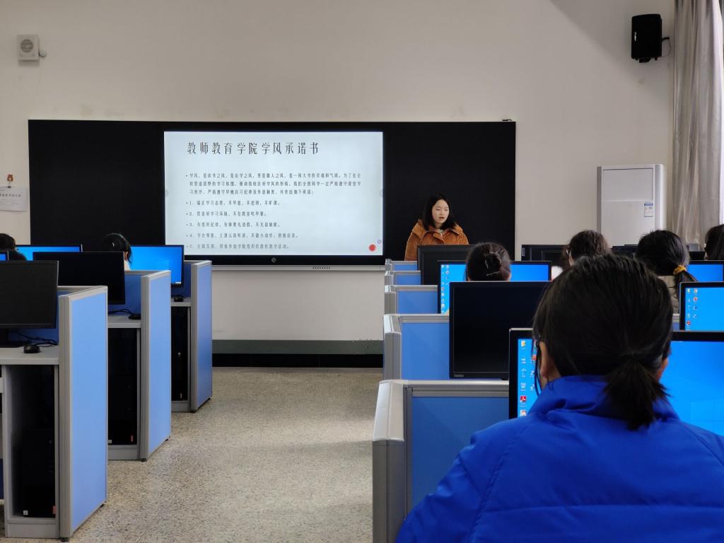 师德学风承诺活动为新学期打造了一个良好的开端,进一步强化了教院的师风学风建设,既增强了教师教书育人的使命感、责任感,也让同学们明确了新学期的目标。新学期,全院师生必以实际行动践行今日之诺言!