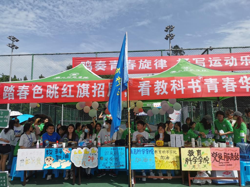 27日早,我院院领导和80名运动员、志愿者代表组成开幕式方队入场。学院开幕式方队,经多日排练,步伐整齐、口号响亮,舞蹈表演洋溢青春热情,展现了教科学子的青春姿态。开幕式结束后,我院教职工运动员代表还参加了学校组织的趣味运动会,活跃了教师的身心,丰富了运动会的形式。同时,为更好地组织、服务运动员进行比赛,学院学生分会前期安排、布置学院服务点,开展志愿者一对一帮扶,准备好各类药品、饮用水。志愿者8人一组两小时一轮换,轮流值守,为教院的运动员们提供贴心服务。各机构学生干部在烈日下奔走拍照,为运动员们留下最美瞬间,各班组织同学编写鼓励小文章,为运动员们呼喊加油。