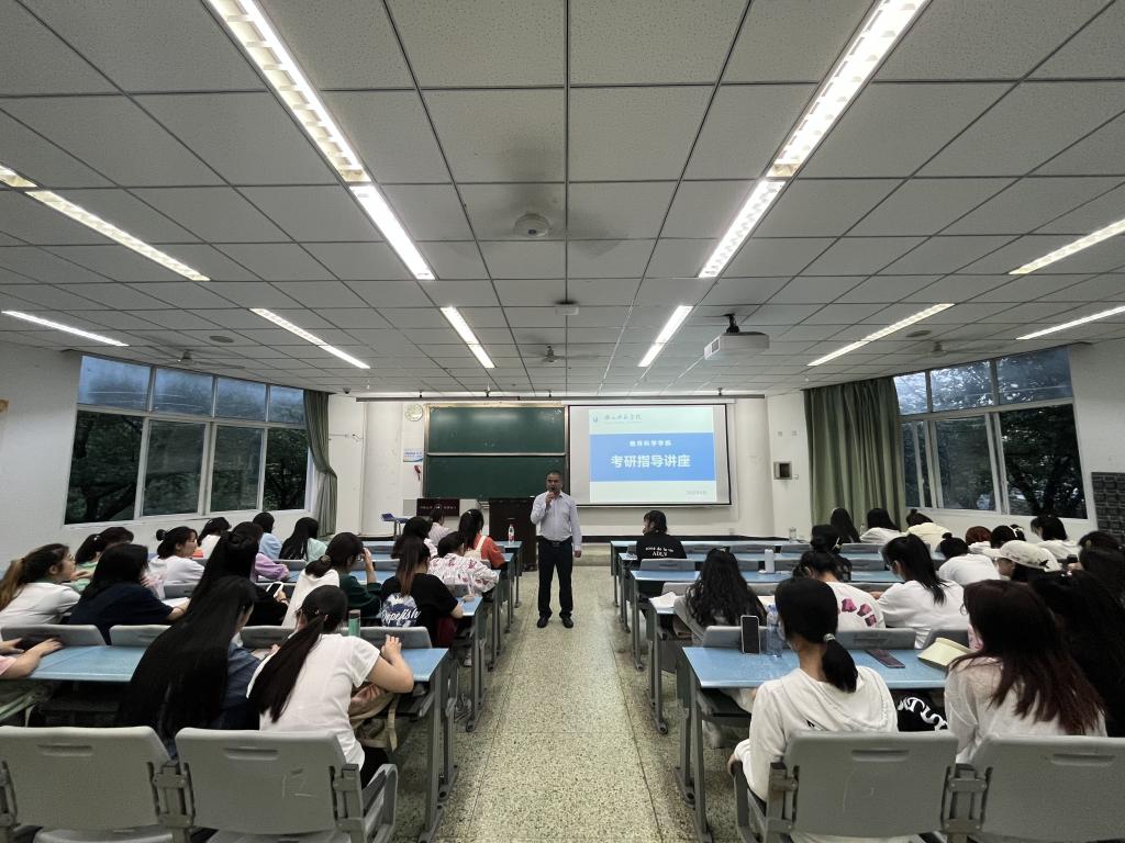 罗立顺从报考研究生的意义、硕士研究生考试相关政策、师范专业发展现状分析、川内硕士研究生招考情况、考研复习时间分配等方面展开讲解。并结合学院学生的实际考研情况为同学们介绍如何选择院校及专业、如何搜集考研信息、如何准备笔试以及面试。他提醒同学们要确立适合自身能力的合理考研目标,还为同学们详细梳理了考研的备考时间线。