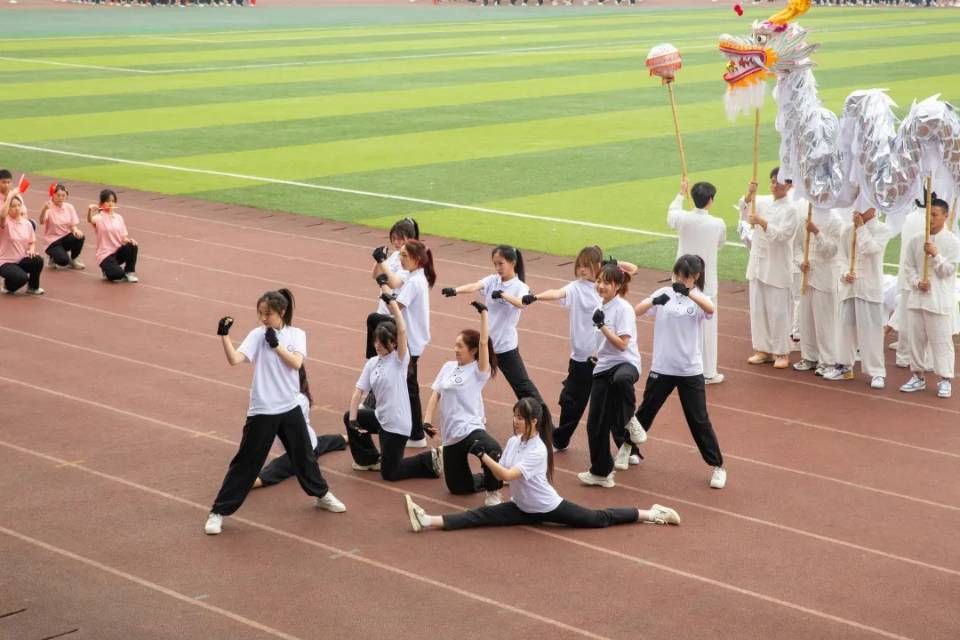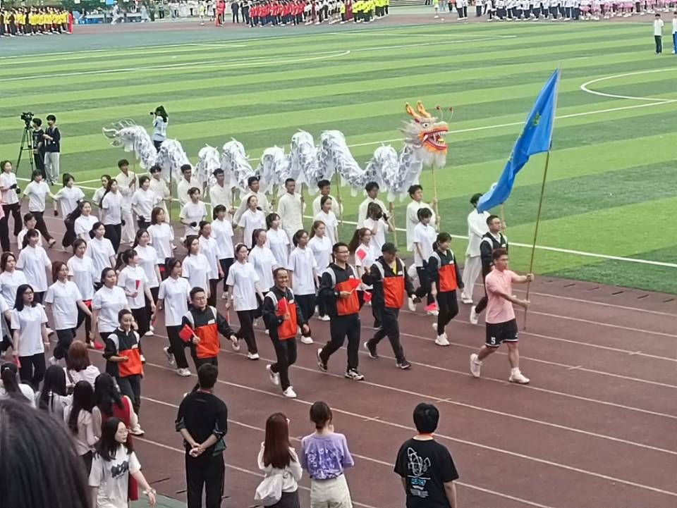 早上9点,院领导、辅导员和80名运动员及志愿者代表组成开幕式方队入场。开幕式上大家身着统一服装,迈着整齐的步伐,带着昂扬的气势走过主席台。他们在主席台前表演舞蹈《龙拳》,洋溢着青春热情,展现了教科学子的青春姿态。