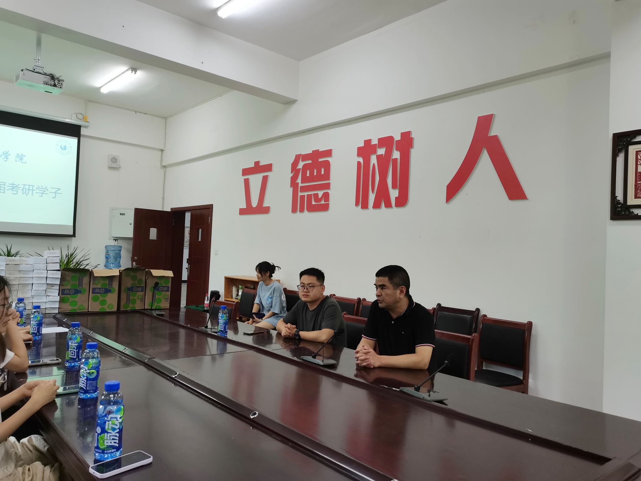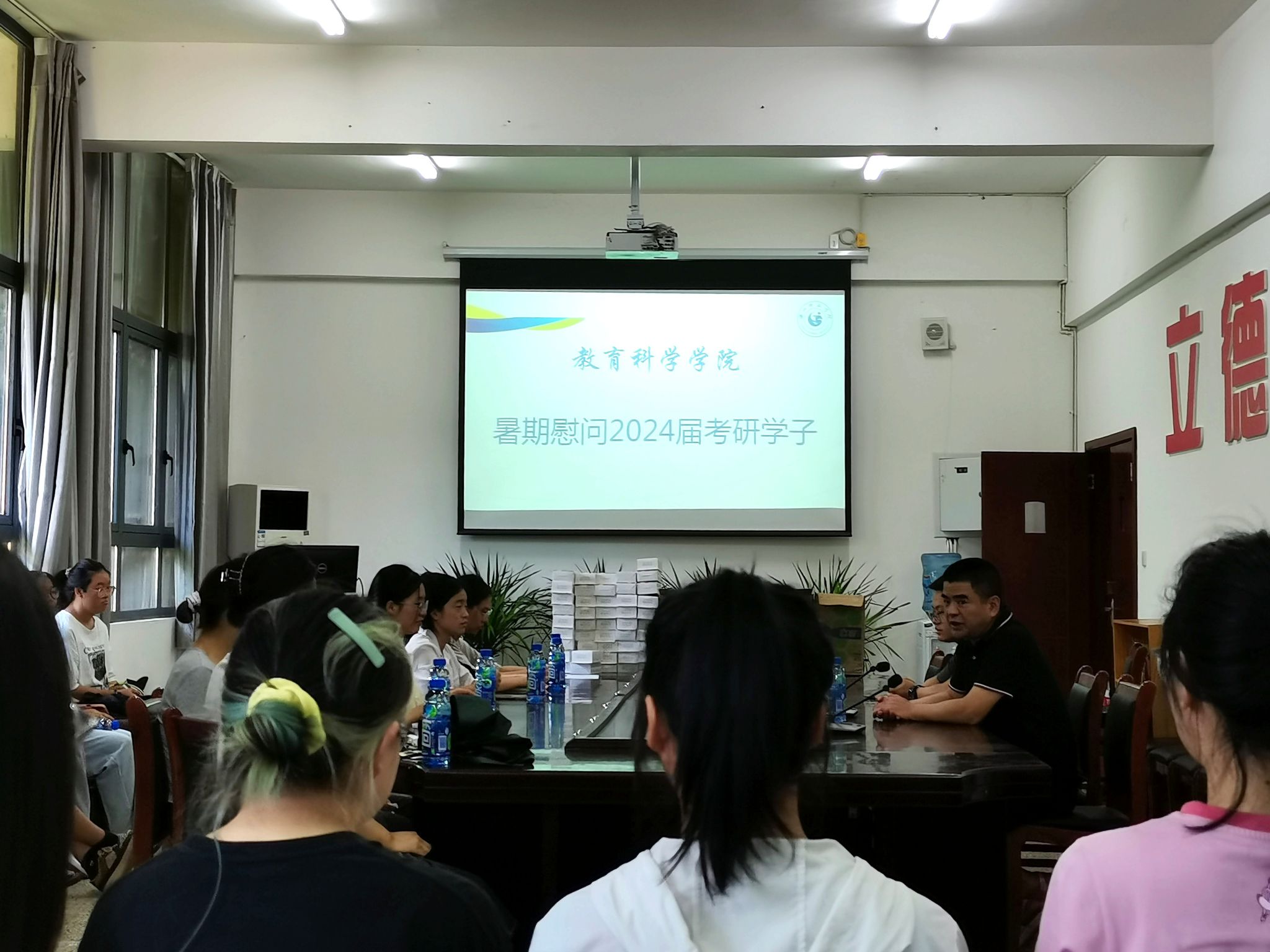 罗立顺先询问了同学们在校的住宿、饮食等情况,关心大家在校期间遇到的学习与生活方面的困难。接着,就考研中期复习跟大家做了交流,希望大家做好合理的复习计划,根据中期复习的成效及时做好调整,保障复习的效率。并且适时给自己放个“小假”,调整好自己的备考状态。同时,在校期间还要注意防暑、防溺水安全,不要到河边纳凉、玩耍,跟父母也要经常通电话,让父母不要过于担心自己的生活。朱志刚跟同学们主要交流了如何缓解备考焦虑,在留校复习的过程中要相互多交流,多吸取其他同学有效的复习方法,根据复习效果,可以对自己的复习目标和备考学校进行合理调整。
