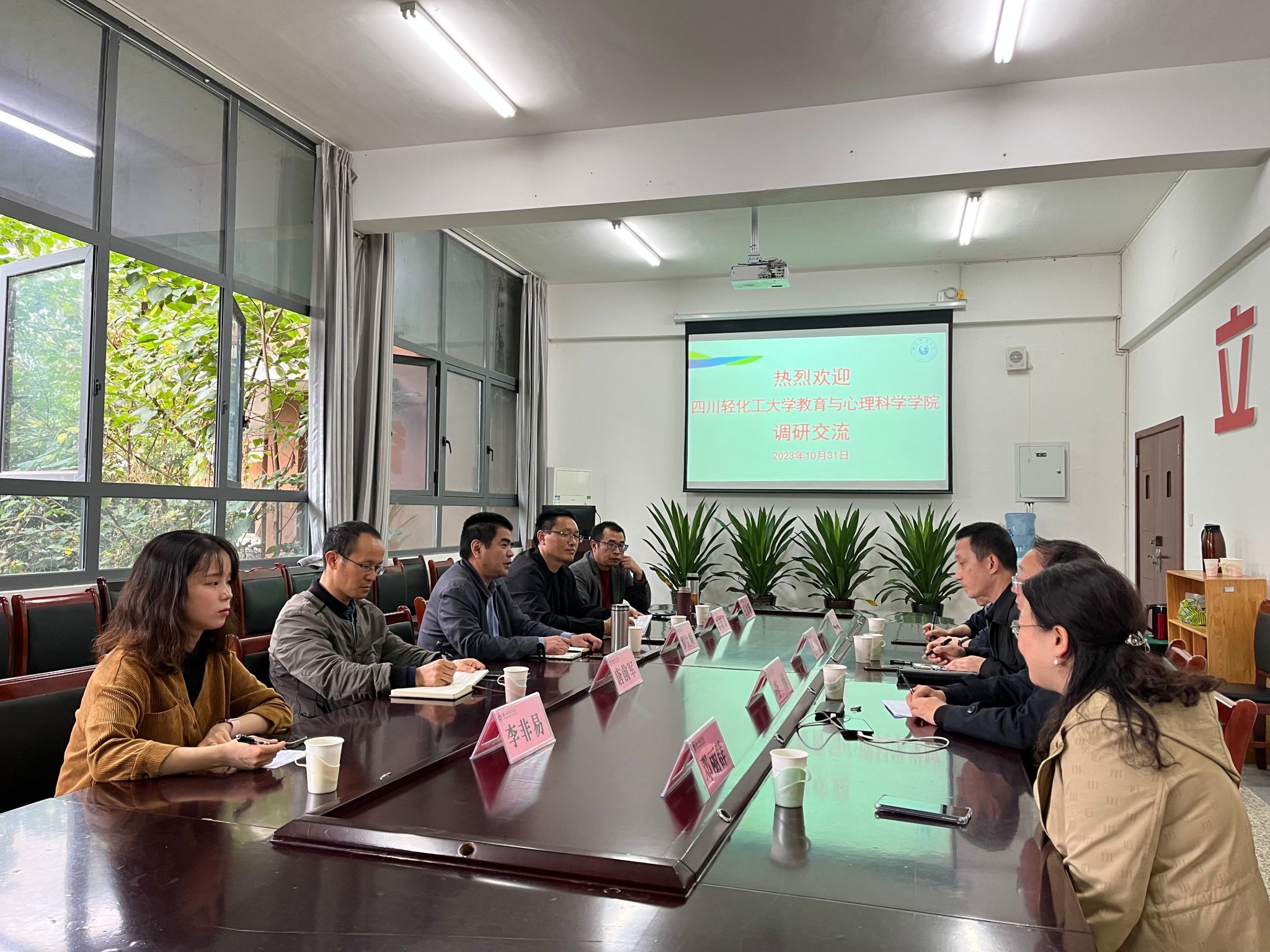 本网讯(文、图/巴玉宁)10月31日,四川轻化工大学教育与心理科学院党委书记杜鑫、副院长李博、心理学系主任刘广林、学前教育系主任邓丽群一行四人到我院调研交流学科建设、专业发展、党建工作和学生发展等工作。学院党委书记罗立顺、副院长徐世鼎、副院长唐前军、心理学专业负责人王立新、学前教育系副主任李非易参会,会议由徐世鼎主持。
