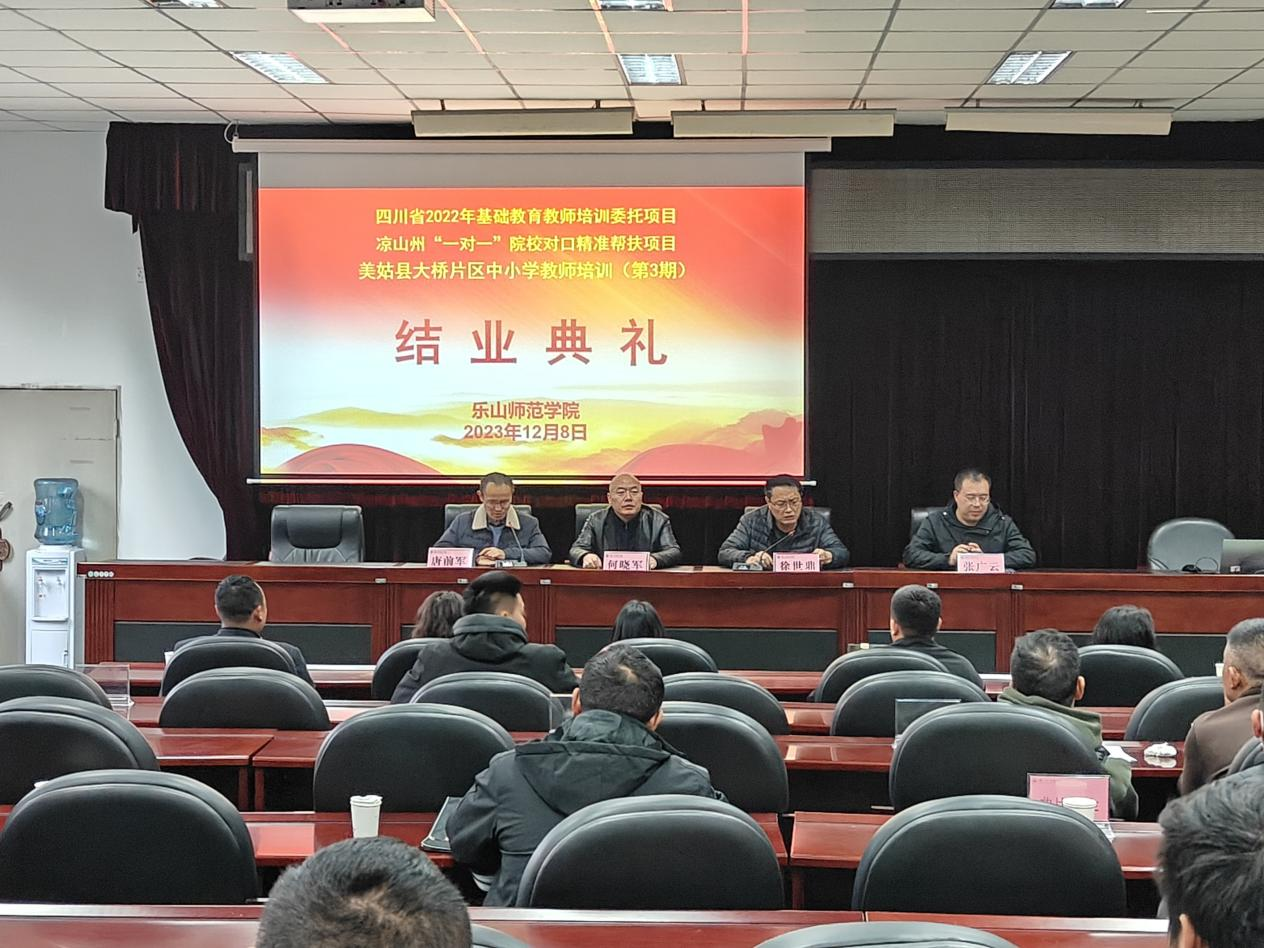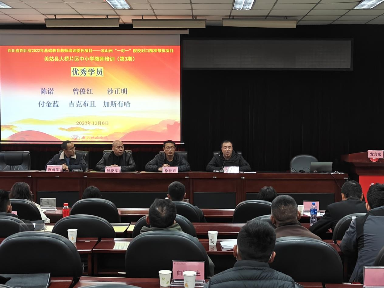 本网讯(文/何旭洋、图/何旭洋、蒲绍东)12月7日下午,四川省2022年基础教育教师培训委托项目——凉山州“一对一”院校对口精准帮扶项目(第三期)结业典礼在弘毅楼413进行。betway西汉姆党委副书记何晓军,副院长徐世鼎,教师教育教研室主任张广云,赵增华、张源元及40名学员参加,结业典礼由副院长唐前军主持。