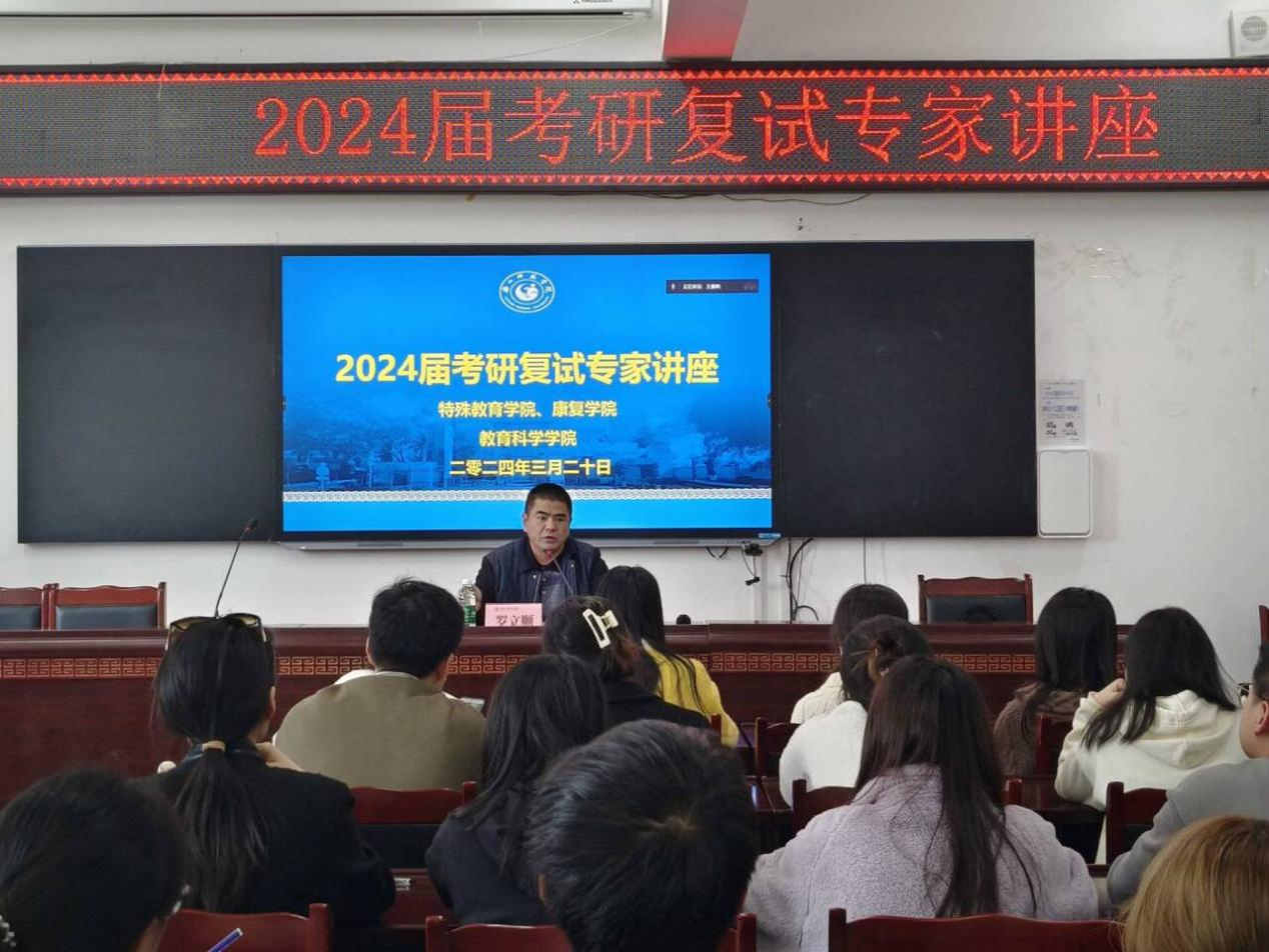 本网讯(文/朱梓菡 图/山劲飞、邹佳丽)3月20日下午,betway西汉姆和特殊教育学院(康复学院)在特教A栋406室举行考研复试指导讲座,教科学院党委书记罗立顺主讲,两学院2024届考研学生参加。