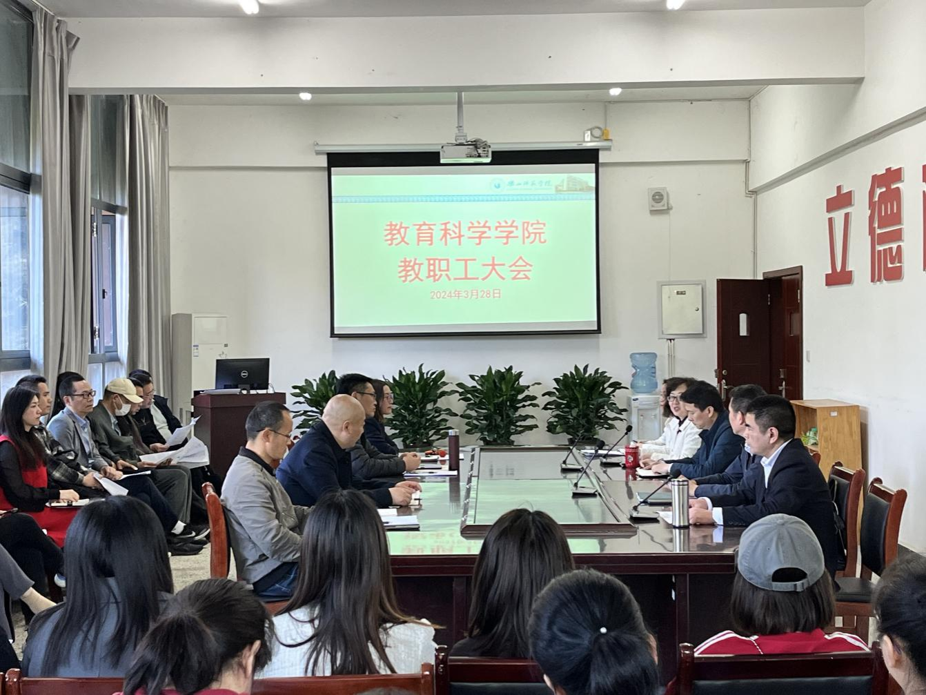 本网讯(文/图、巴玉宁)3月28日,betway西汉姆在特教B栋101会议室召开全体教职工大会,党委常委、副校长汪天飞教授,党委常委、组织部长佘万斌教授,党委组织部副部长周琴以及学院全体教职工参加,会议由学院党委书记罗立顺主持。