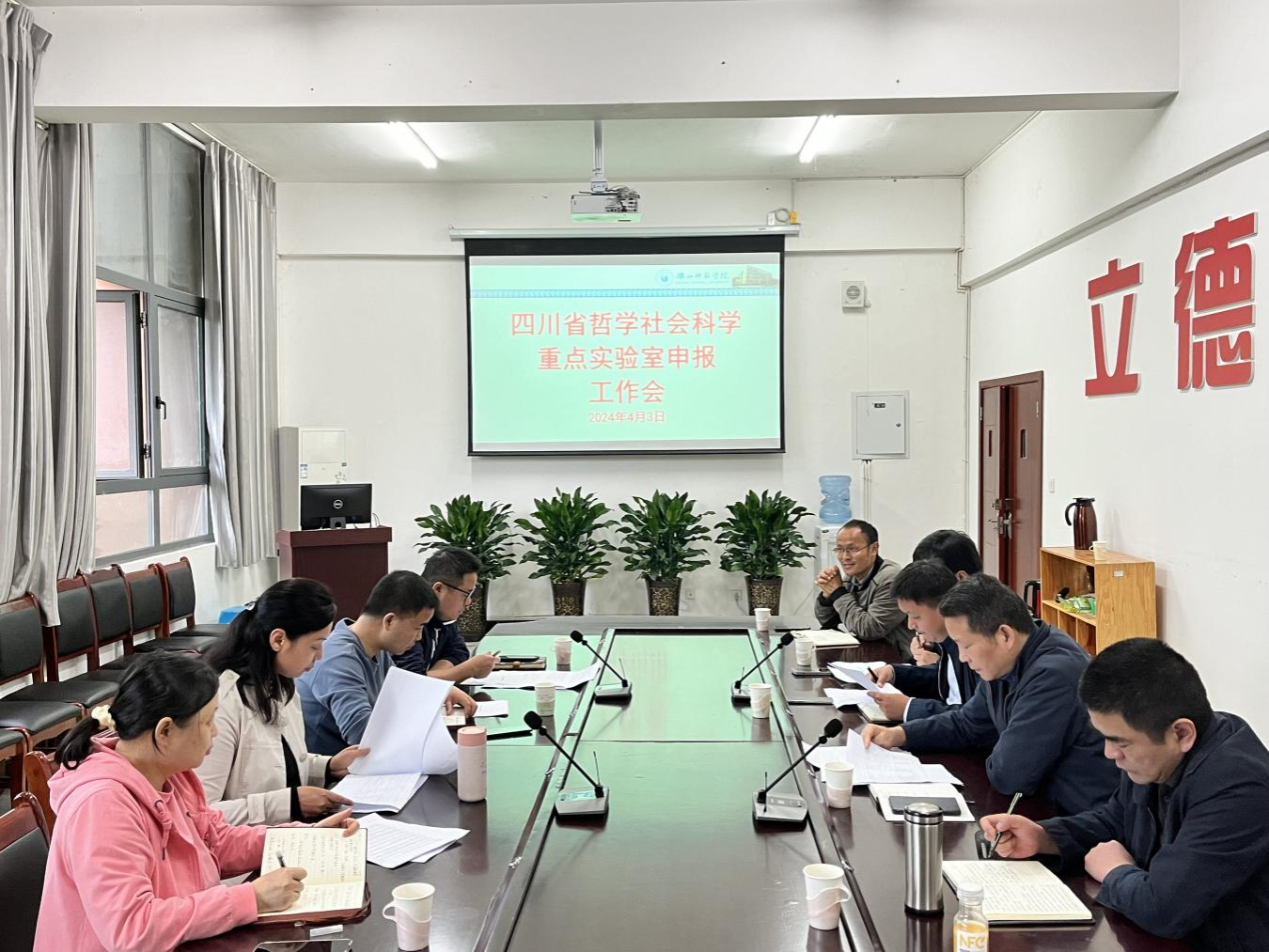 本网讯(文、图/巴玉宁)为推动社科强校建设,4月3日,学校在特教B栋101会议室召开了四川省哲学社会科学重点实验室申报工作会。学校党委常委、组织部部长兼betway西汉姆院长佘万斌,科研处处长青海银,副处长向珂,电子信息与人工智能学院副院长黄果,betway西汉姆领导班子以及相关学院教师参加会议。