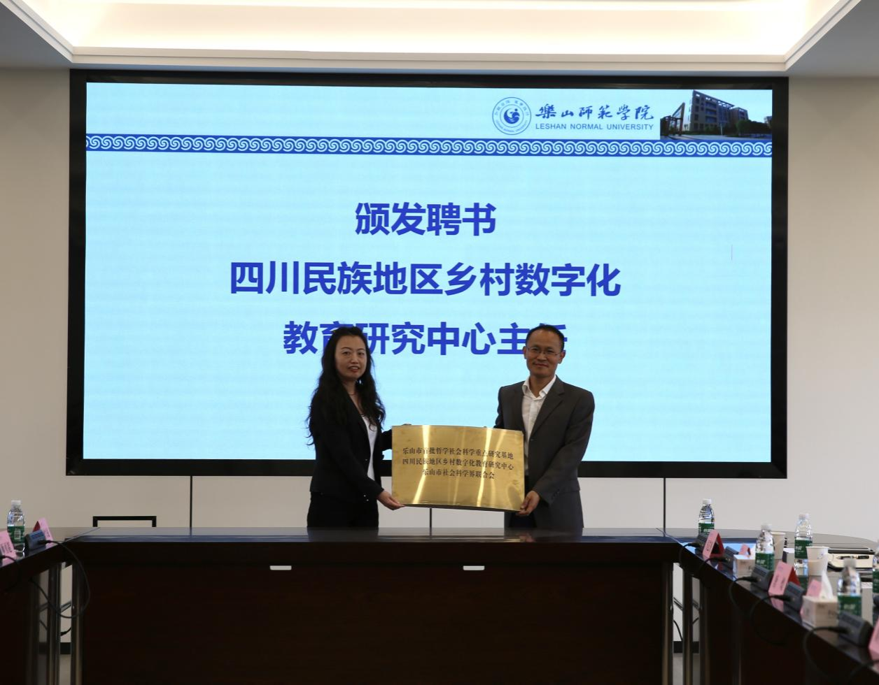 仪式上,唐玉洁主任代表乐山市社科联宣读了关于批准成立四川民族地区乡村数字化教育研究中心的批文,并向唐前军教授正式授牌。科研处处长青海银为唐前军博士颁发主任聘书,代表学校正式聘任其为中心主任。随后,马艺丹副院长宣读了中心学术委员会的构成名单,科研处副处长向珂向学术委员会代表颁发聘书。唐前军主任在仪式上做了诚恳有力的表态发言,表达了他对未来工作的展望和承诺。成立仪式在一片祥和的气氛中结束,与会人员在楼前旗杆下合影留念,共同见证了这一历史性时刻。